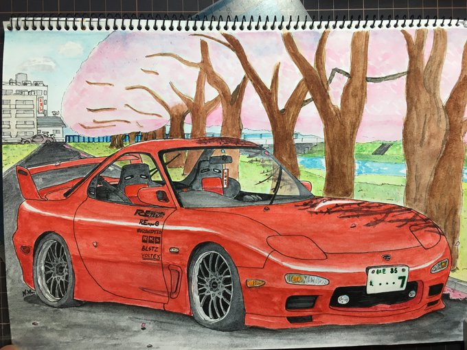 桜とFD 完成しました〜!! #イラスト #RX7