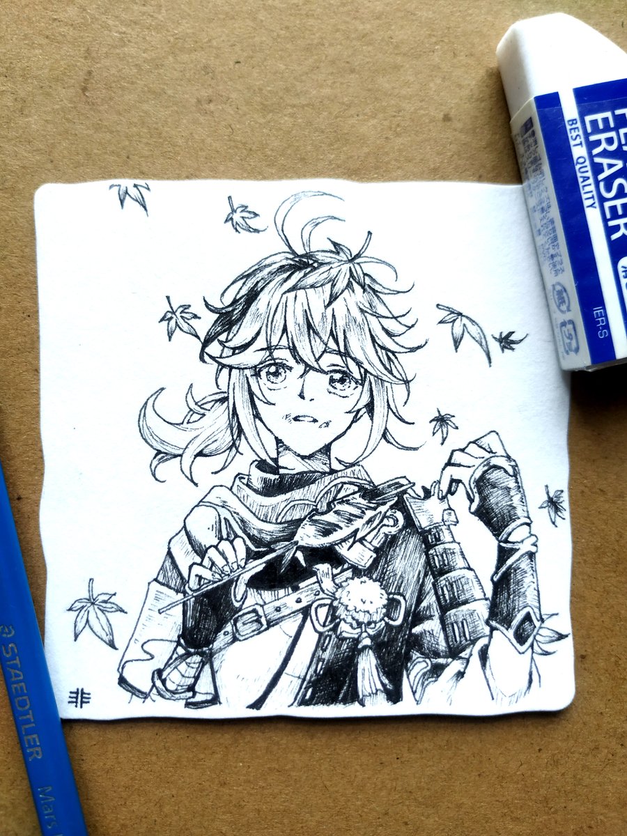 #inking #inktober2021 #inktober21 DAY 29: Happy birthday #Kazuha !! 🍁 #inktobermalaysia #genshinimpact #genshintober2021 #楓原万葉 #楓原万葉生誕祭2021