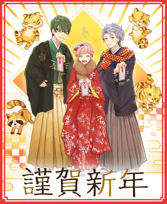 83 409 #GSお正月2022 あけましておめでとうございます、今年もよろしくお願いします!!🐯 今年の描き初めはバンビと紺野・設楽先輩コンビです✨ 22/01/01 17:29