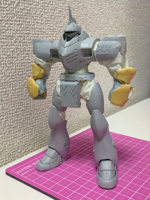 キット化されないだろうなと思ったので1/60レイバーXをスクラッチ。 欲しくても売ってないなら作るしかない(;´∀`) おおよそのベースができました。 関節カバーはビニールカーテンを使用、ウレヒーローで塗装出来るはず🤔 土台はロボ魂ブロッケンです。 #機動警察パトレイバー #パトレイバー模型部