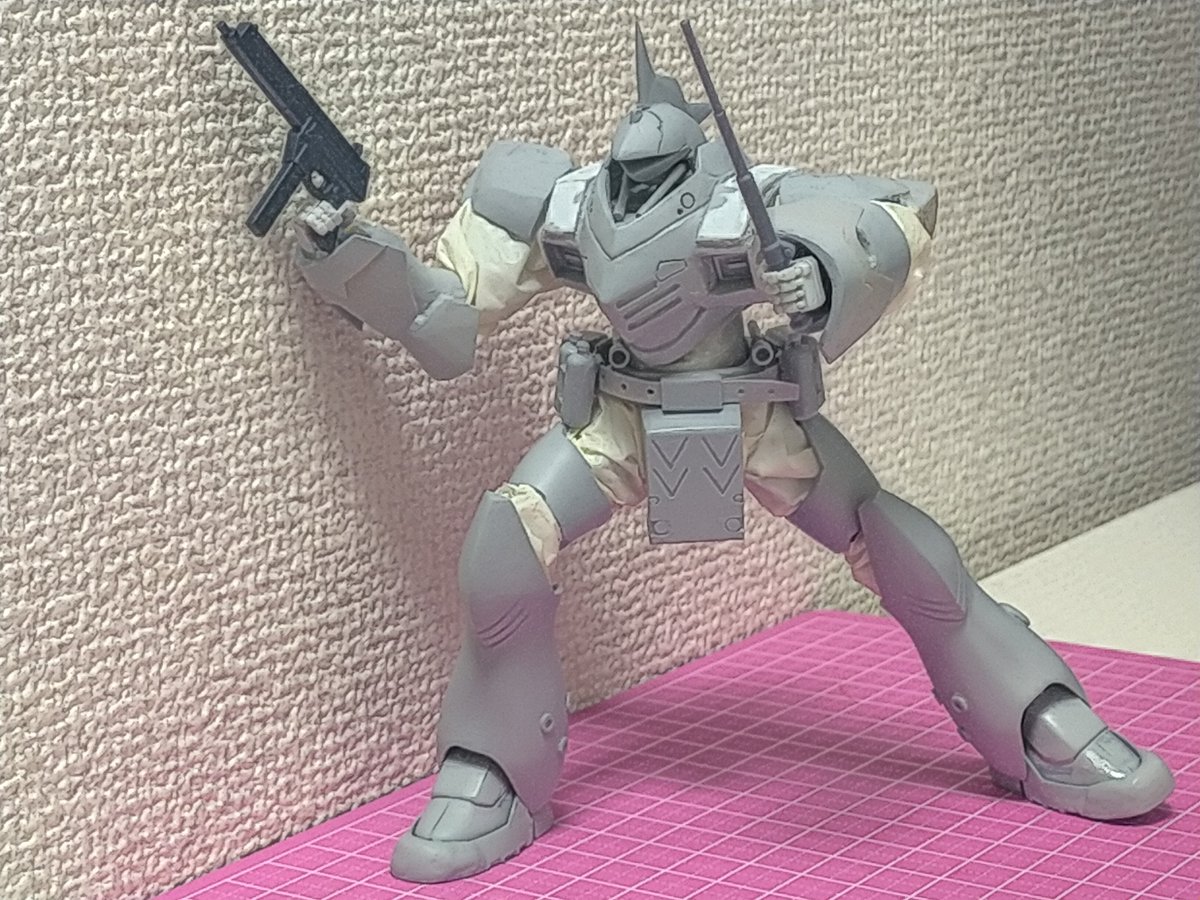 レイバーX進捗 銃と警棒が完成 左手は指可動は諦め、差し替えできるようにしました なんか手のバランス悪い気がするので調整が必要かな💦 #機動警察パトレイバー #パトレイバー35周年 #パトレイバー模型部