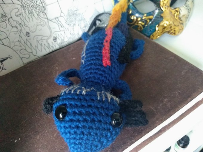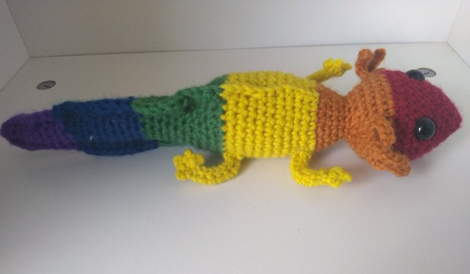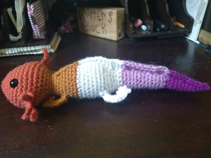 My rainbow flag axolotl hasn't gotten much love yet. :( Can we fix that today? fracturedfoxglovecreations.com/product/queer-…