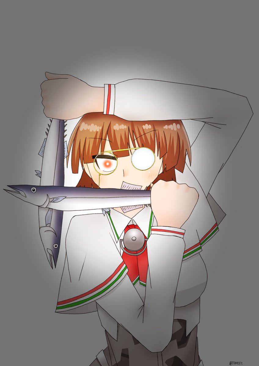 ローマさん(秋刀魚モード)※修正ver 「我らが使命は、秋刀魚をその最後の一匹まで漁獲することーAmen!」 #艦これ #イラスト
