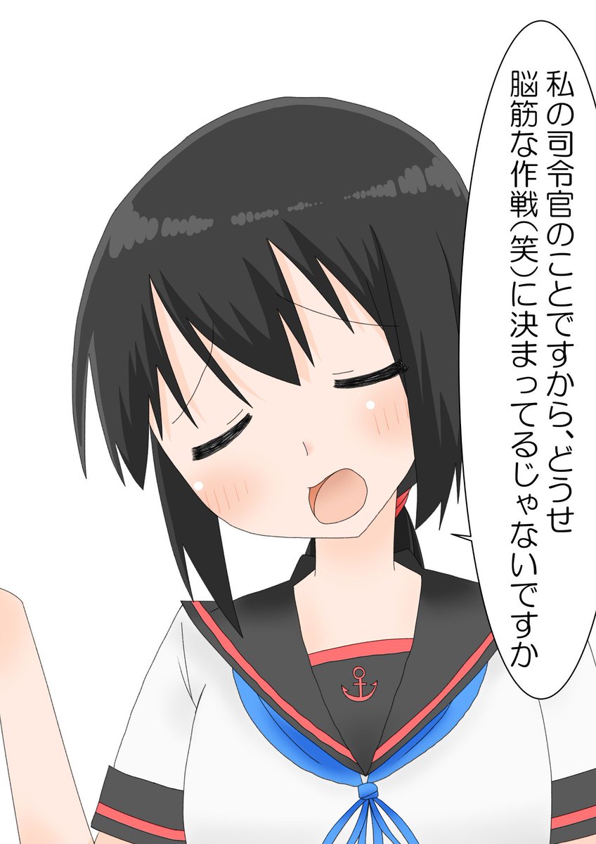 5 29 問題です。提督はどんな作戦を考えているでしょう? 1枚目:考える提督ちゃん 2枚目:ジャン・バール(回答者1人目) 3枚目:吹雪(回答者2人目) #艦これ #イラスト 22/11/27 08:19