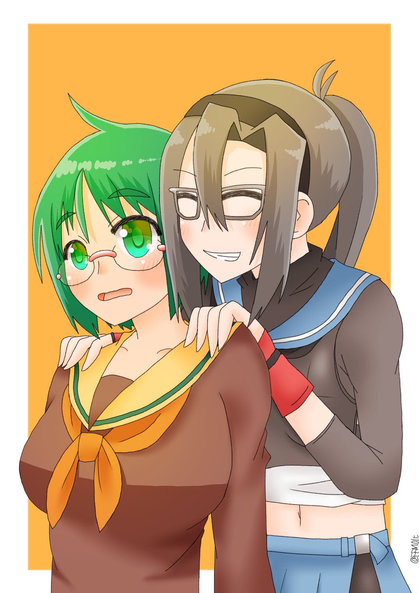 最上「天霧、大丈夫?ホントに似合ってる?」 天霧「大丈夫っすよ、最上さん!提督は最上さんにほれてますから、眼鏡かければイチコロっすよ!!」 #艦これ #イラスト
