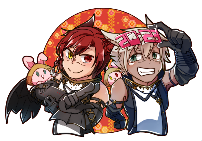 7 39 あけまして描き初め2021! 本年もよろしくお願いいたします (オルシュファンさん+エスティニアン+ヒカセン) 21/01/03 15:50