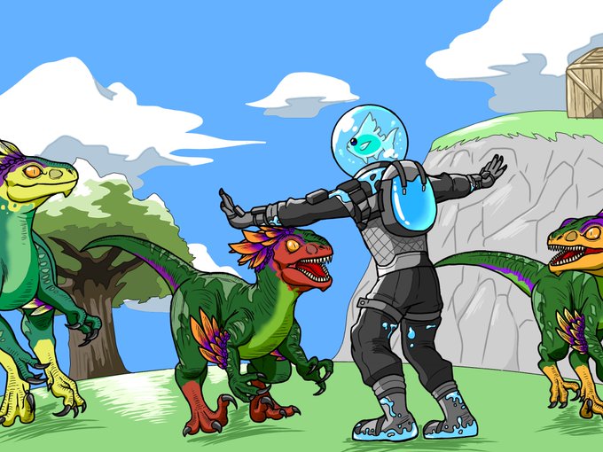 10 34 これはマジで頑張って描いたよ ジーアと青いラプトル #フォートナイト #フォートナイトイラスト #ラプトル 21/05/31 18:49