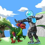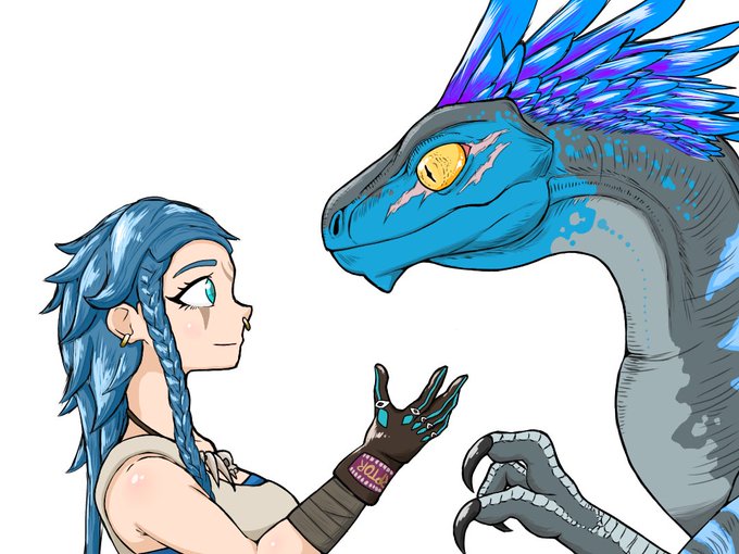 これはマジで頑張って描いたよ ジーアと青いラプトル #フォートナイト #フォートナイトイラスト #ラプトル