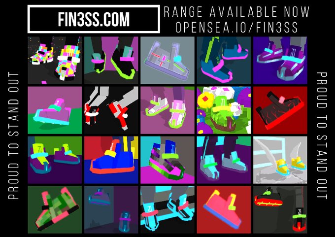 Hey Frens We want you to have the best kicks in the metaverse, head on over to opensea.io/FIN3SS to pick up a pair of collectible wearables 20 Unique designs crafted just for you Love from FIN3SS x #voxel #voxelart #WAGMI #NFT #wearables #TheSandboxGame @TheSandboxGame