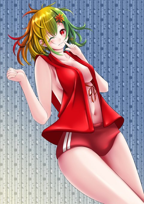 紅葉 #オリジナル #女の子 #pixiv今日のお題 #擬人化 #赤目 #紅葉 #ブルマ #赤ちゃん #ウィンク #ピアス pixiv.net/artworks/94549…