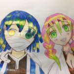 0 4 この前描いたおばみつに色をつけてみました🥰 色鉛筆だけで塗りました〜✨ 疲れた…w 相変わらずのクオリティーですが…w #鬼滅の刃 #おばみつ #色鉛筆 #甘露寺蜜璃 #伊黒小芭内 20/12/24 15:00