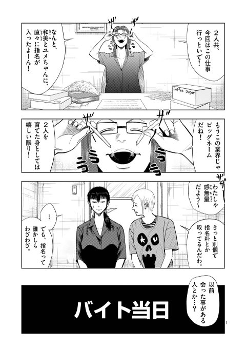 裏バイト:逃亡禁止 更新されました! 通常更新でホテル従業員後編、先読みで金・銀兄弟による質問と、引っ越しスタッフ前編公開です!!ユメちゃんの秘密の一端が明かされる…!?是非ご覧下さい!! #裏バイト逃亡禁止