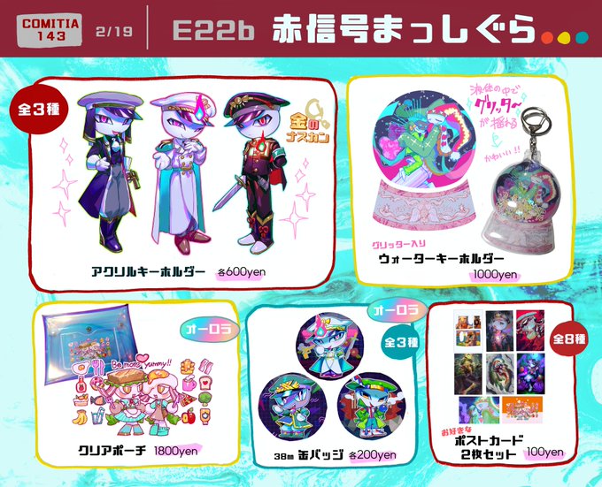 🔷🌟🔺おしながき🔺🌟🔷 2/19 #COMITIA143 赤信号まっしぐら【E22b】 ぷりち~なグッズを用意しました! よろしくお願いします~!