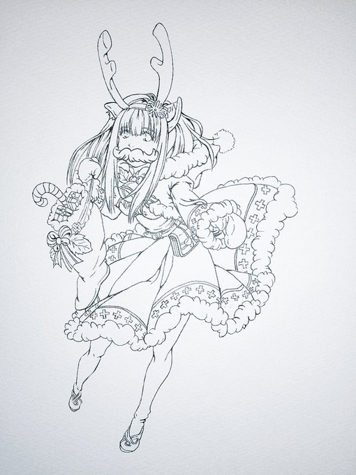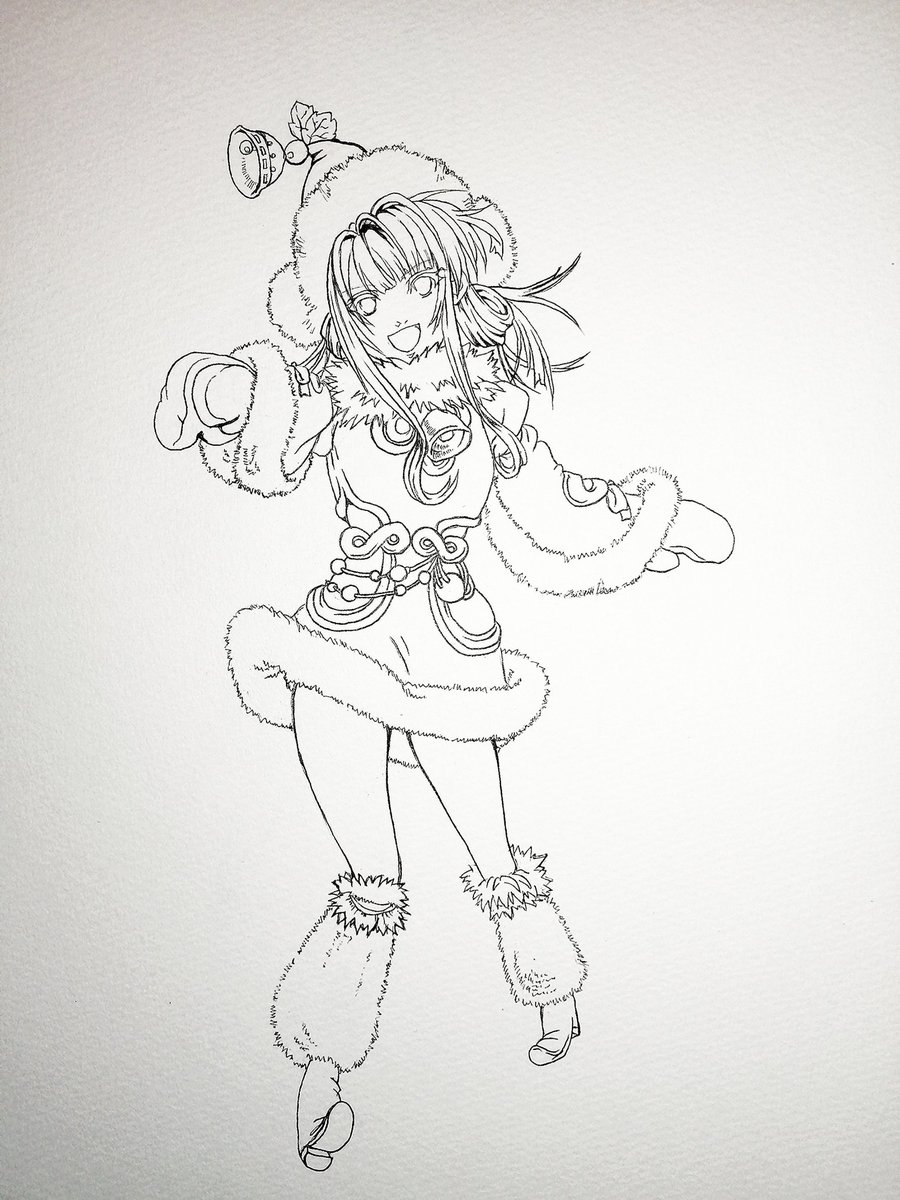2人目完成0~_(:3」∠)_ もっとちゃんと混色出来る色鉛筆揃えたいな~( ´ー`) #イラスト好きな人と繋がりたい #イラスト #クリスマス #サンタコス #手描き #色鉛筆 #illust #illustration #Christmas #SantaClaus