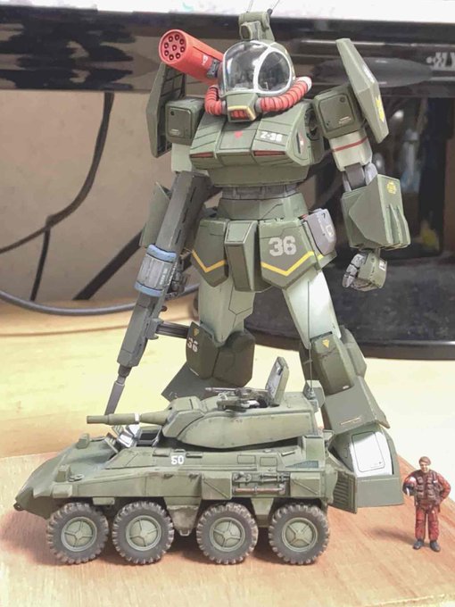 #太陽の牙ダグラム #アイアンミーティング2 やっと墨入れ終わりトップコート! 毎度のワンパターンで、コクピットと股間に力入れてます(⁈)。3枚目は今作の好きなアングル!❗️サバロフの時の方が作り込んでたなぁと反省してます。😅 後は汚し塗装で完成のハズだっ‼️😆