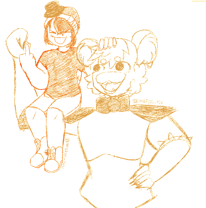 a sketch of yesterday's stream + glamrock freddy :]]] drew both of them on ms paint - - - - - #quackityfanart #quackity #glamrockfreddy #fnafsecuritybreach