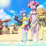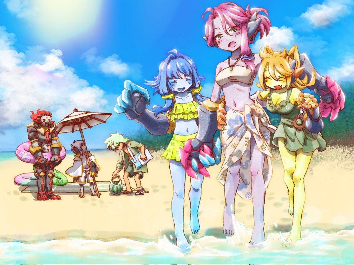 魔剣ちゃん達と里帰りして一緒に買い出しなどしてほしいな〜。という願望で描き納め。 #ゆるドラファンアート