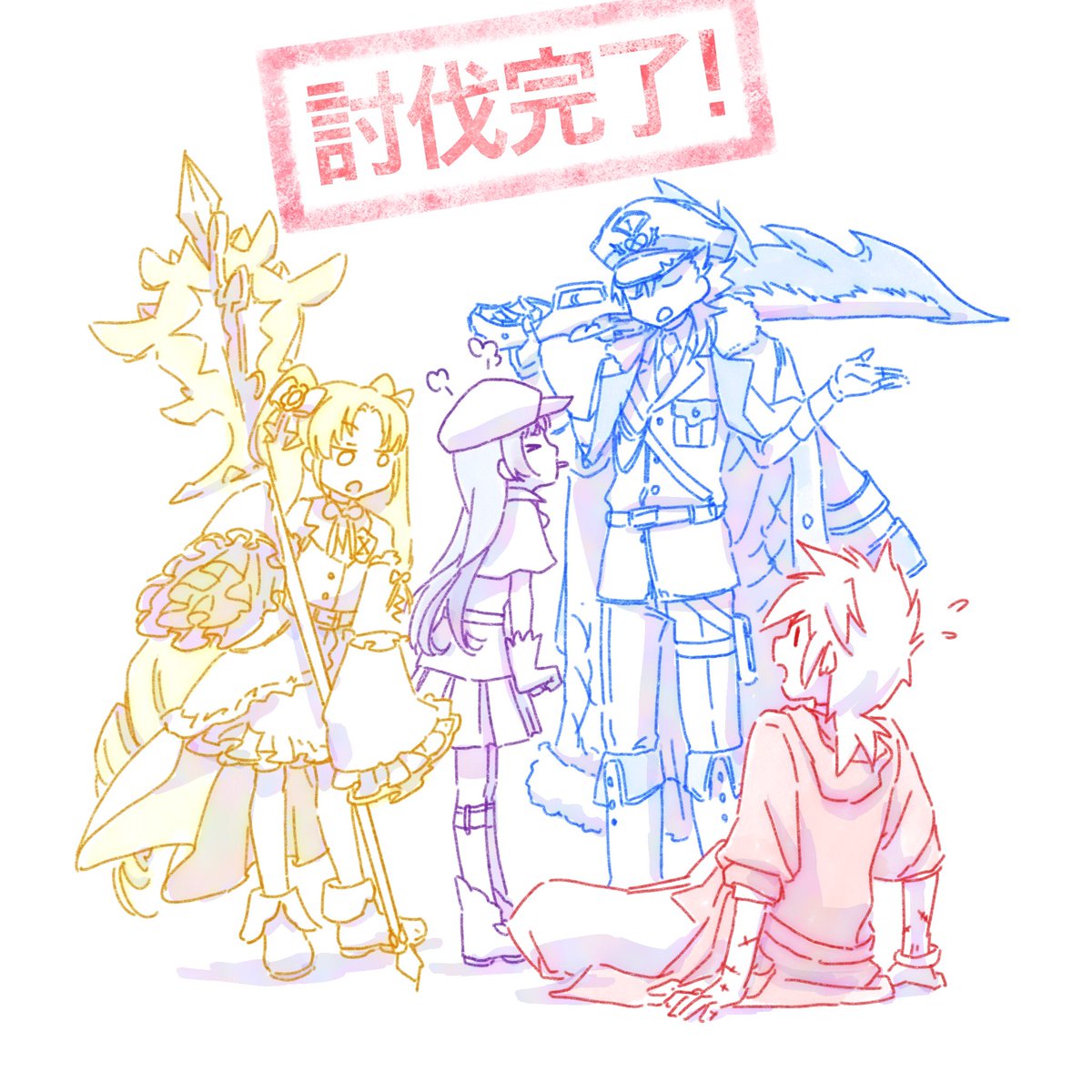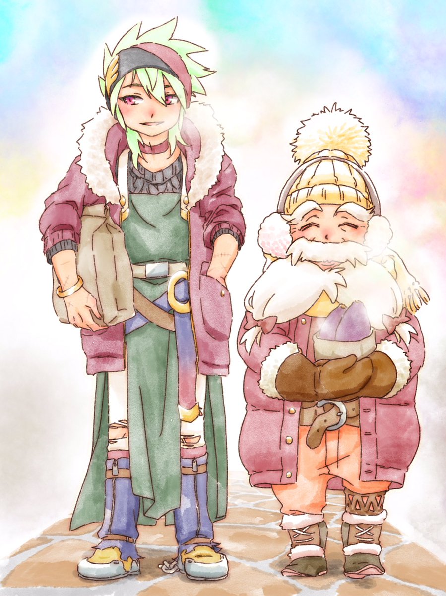 0 2 魔剣ちゃん達と里帰りして一緒に買い出しなどしてほしいな〜。という願望で描き納め。 #ゆるドラファンアート 22/12/31 16:46
