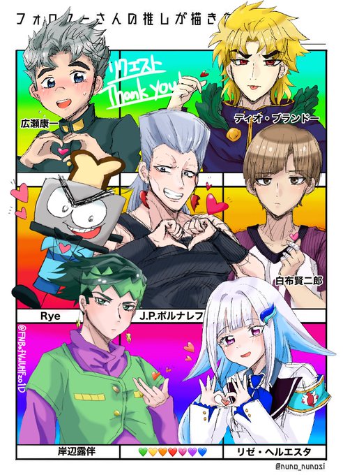 #フォロワーさんの推しが描きたい 完成しました!みなさんの推しを知ることが出来て楽しかったです。線画が汚いのと枠からはみ出しまくっているのは目をつぶって下さい、。