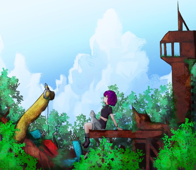 廃墟と猫と少女 #イラスト #illustration #イラスト練習中 #illustrationart