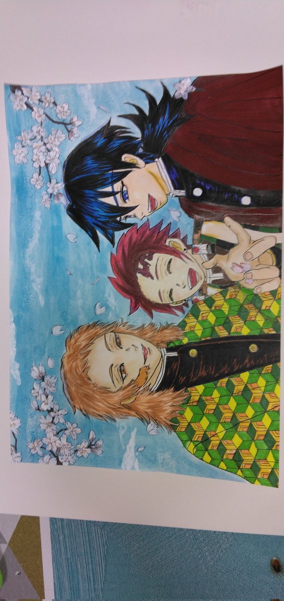 二次イラスト、錆兎君生存if 水の兄弟弟子(*^▽^*) 我慢出来ず頑張りました💪😊♥✨ 下手ですが、ゆるい目でみて下さいねm(。≧Д≦。)m #鬼滅の刃イラスト #錆兎君ハッピーバースデー #アナログイラスト