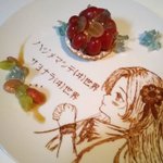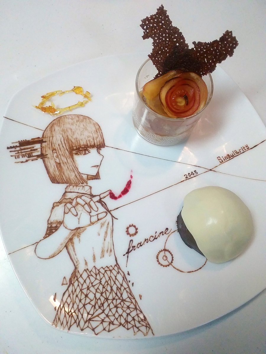 一次創作始めました! アシェットデセール(皿盛りデザート)温かいものと冷たいものを一皿に。 チョコをインク代わりにしてその時限りの創作をしています。 #イラスト #みんなで楽しむTwitter展覧会 #秋の創作クラスタフォロー祭り