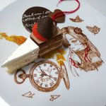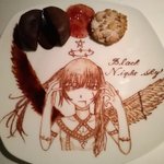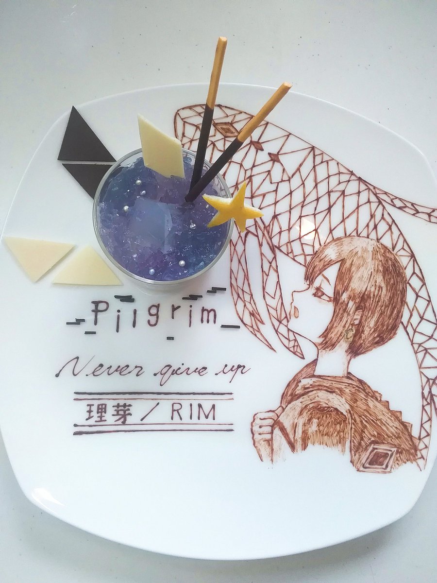絵描きさんが描いた子、ヨゾラが素敵なのでデザートプレートにしてみました。 freedom、dream、wish。 is in your hands。 デザートはバタフライピーゼリーとリンゴベリーの黒糖クランブルタルト。 女の子の瞳にアラザン入れてキラキラさせてます。 #チョコペン #イラスト twitter.com/igunoayomiaz…