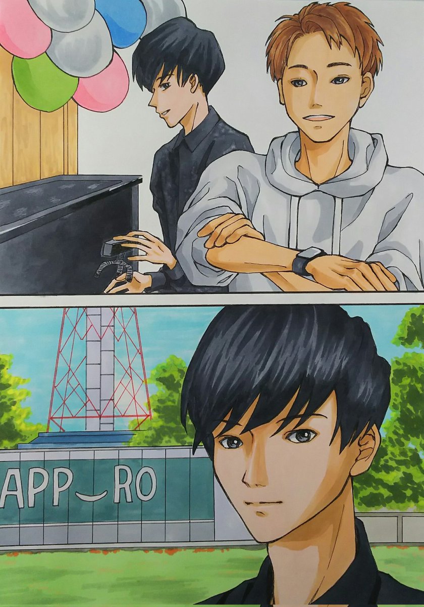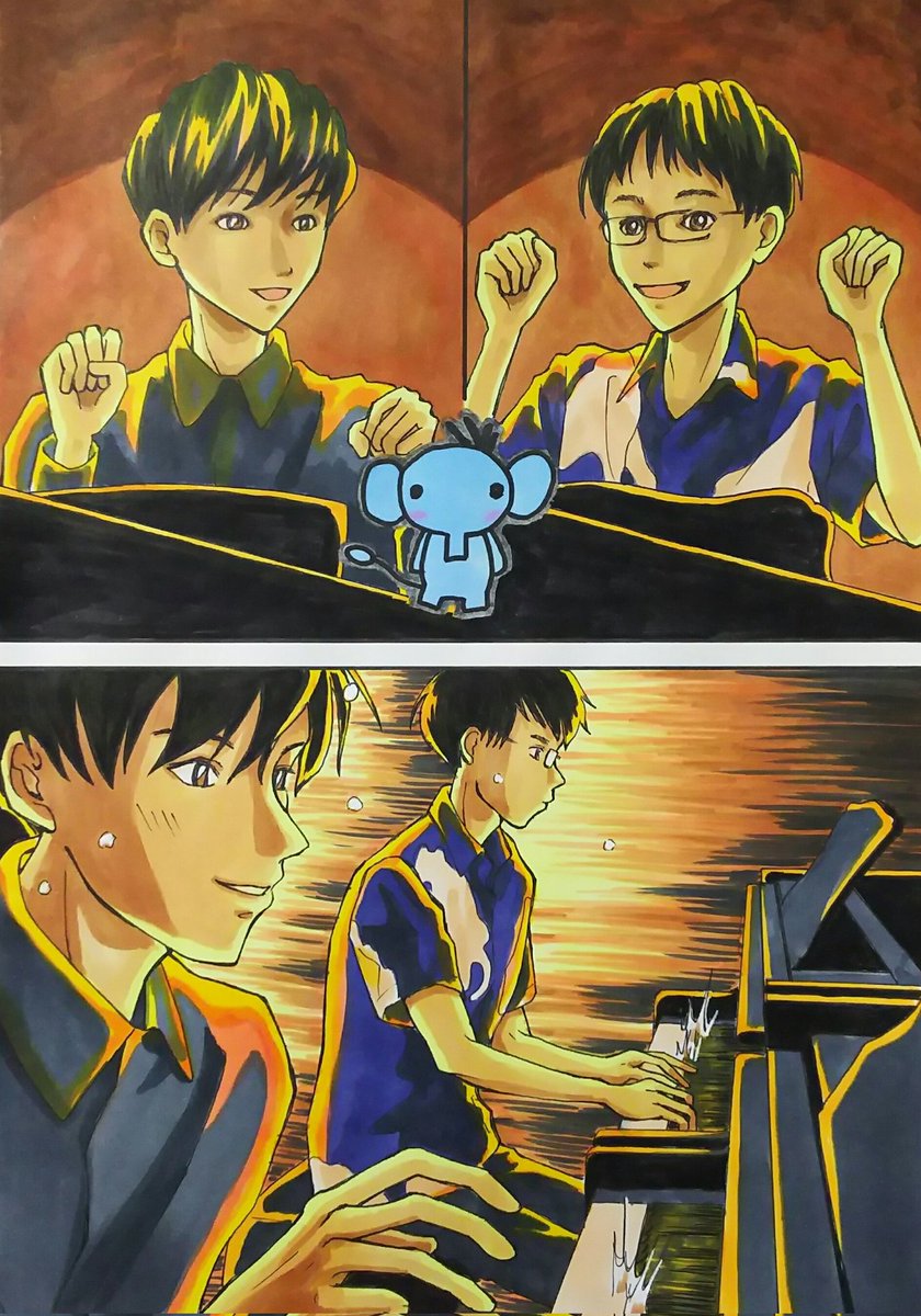 ふみくんお誕生日おめでとう!✨✨✨✨ あらためて、ピアノ活動してくれてることに感謝です いつも配信もぐってて言えないけどピアノの音好き イラストはベイサイドプレイス博多のピアノ(イメージ)です🐟 #ふみくん生誕祭2023 #ふみくん誕生日2023 #ベイサイドストピ #コピック #祝アラサー