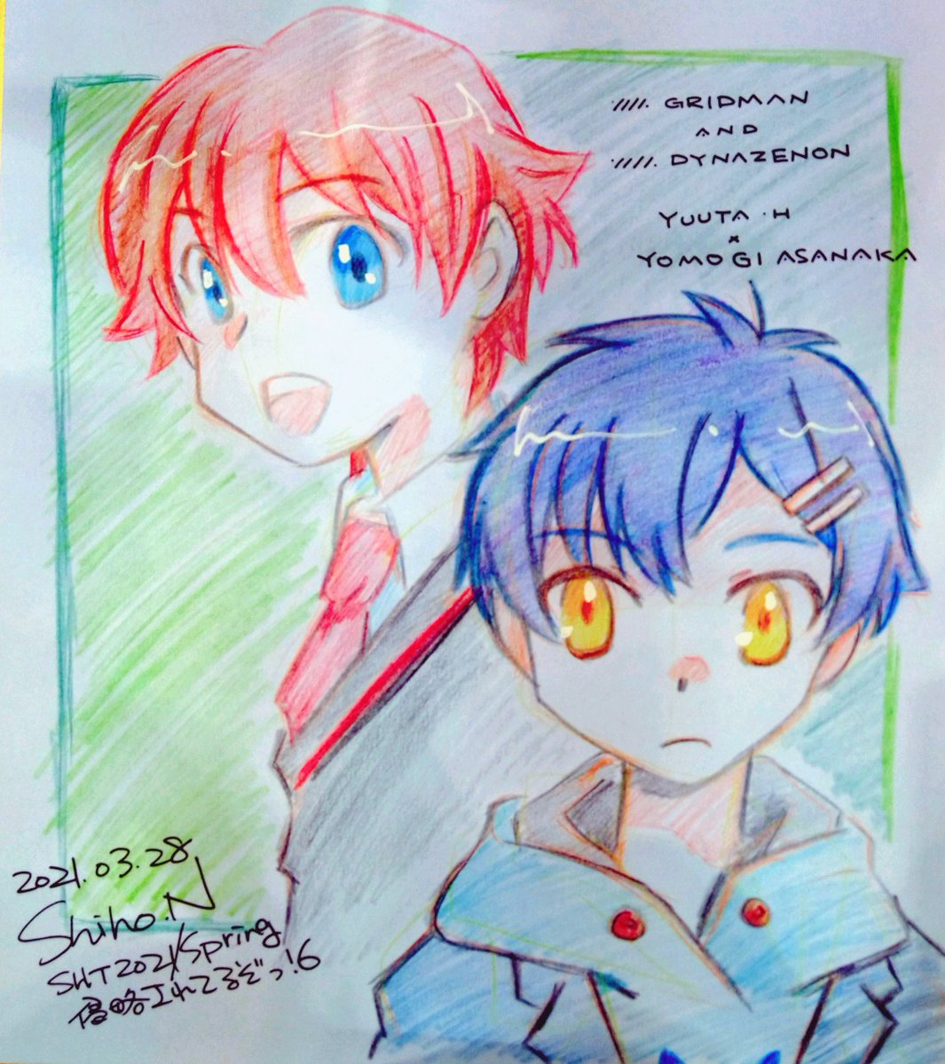 スケブ代わりで描かせていただきました(隣さんには押し付けたとも、boost的に投げたとも…)ミニ色紙。 絵柄が安定しないことに定評があります_(┐「ε:)_トホホ #スーパーヒロインタイム #侵略されてるぞっ5