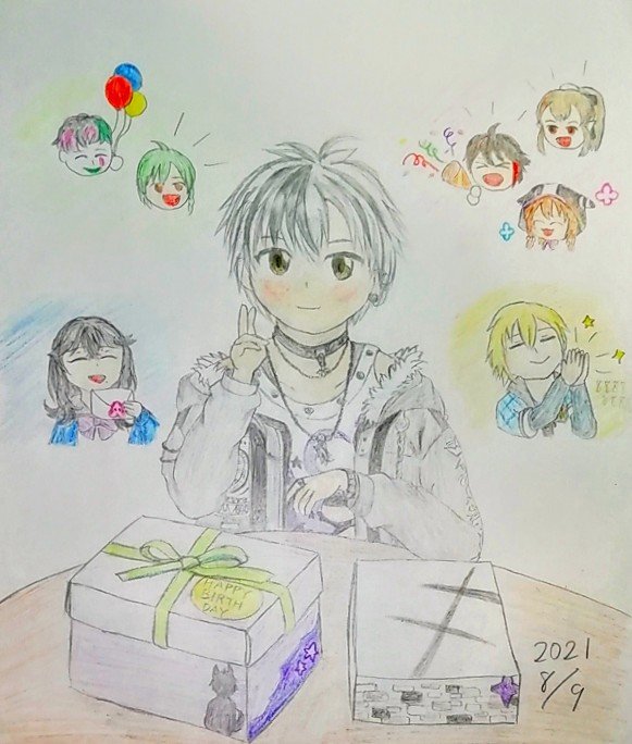 #鈴木勝誕生祭2021 #漆黒の水鏡 勝くん、お誕生日おめでとうございます!拙い絵ですが、お祝いイラストを描かせていただきました(右はおまけ)。 今日も明日もこれからも、勝くんと一緒ならきっとよいよるだ~!!