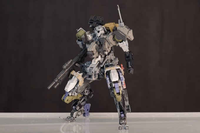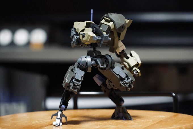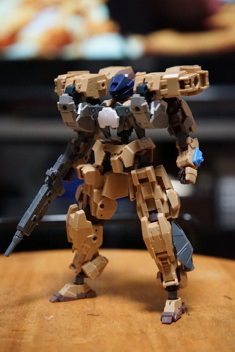 eEXM-T01 リジット 地球連合軍研究基地より確認された、次世代型エグザマクスの開発データ 本機体の特徴は、基礎フレームを刷新し、従来の人型構造から獣脚構造を採用したことにより、陸上での運動性が飛躍的に向上した点である。 #30MM #30MM地球連合軍 #30MM荒野戦