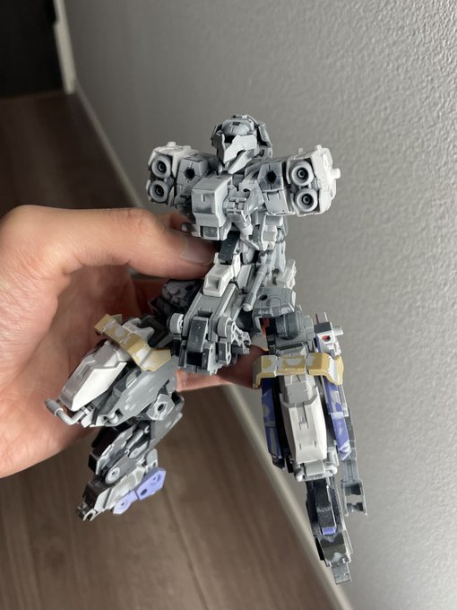 ヴェルヌノヴァ E型 バイロン軍の特殊部隊に配備された索敵・電子戦特化型EXM。 先攻する僚機のR型と共に、優れた指揮系統と後方支援により、座標Rを防衛する。 機体を支える大型サブレッグは不安的な力場での戦闘に適しており、4機のロイロイと共に包囲攻撃を仕掛ける。 #30MM宇宙戦 #30MMバイロン軍