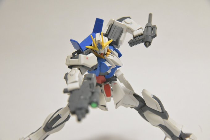 ガンダムF91 (ソレスタルビーイング仕様) F91にGNソードⅢ持たせたら似合ってたので、なんとなくAGE-2の翼も付けてみた(*´ω`*) ついでにどんな色か試してみたかった水性アクリジョンのすみれ色で簡単塗装〜、ええ色やん #ガンプラの画像貼るとRTされると聞いて #F91
