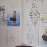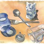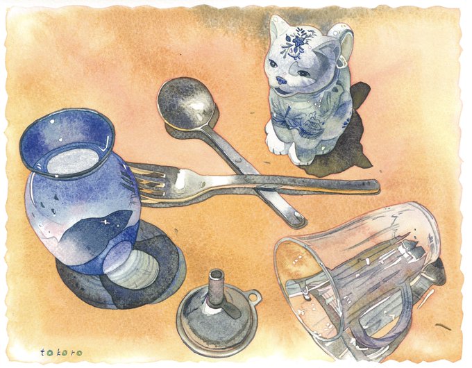 "まちがいさがし" うえとしたの絵でちがうところが6つあります。さがしてね。oO #まちがいさがし #透明水彩 #アルシュ紙 #watercolor #spotthedifference #archespaper