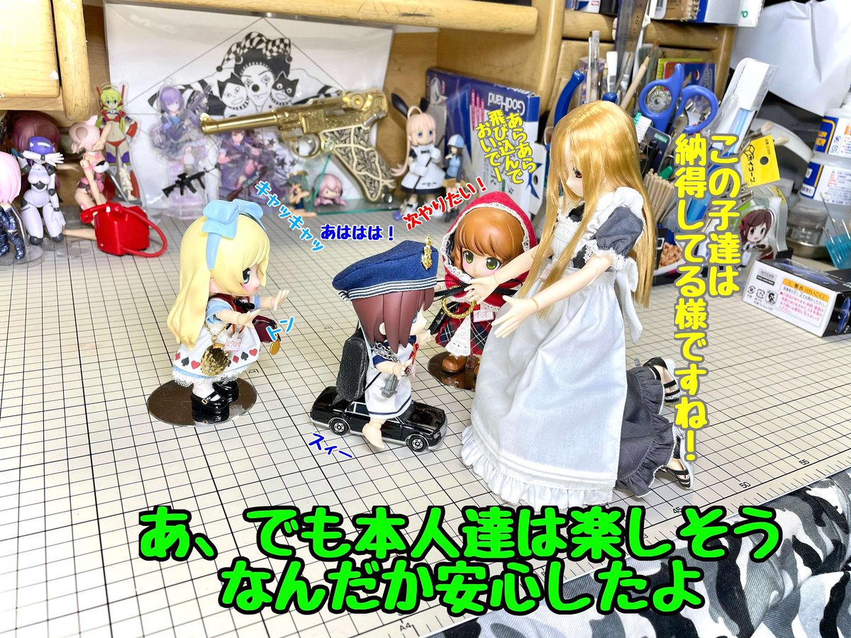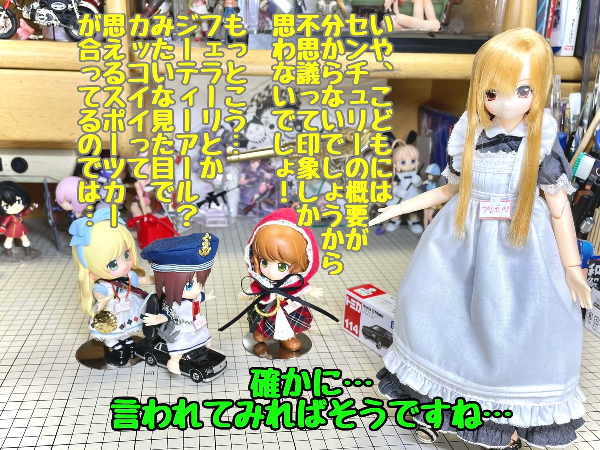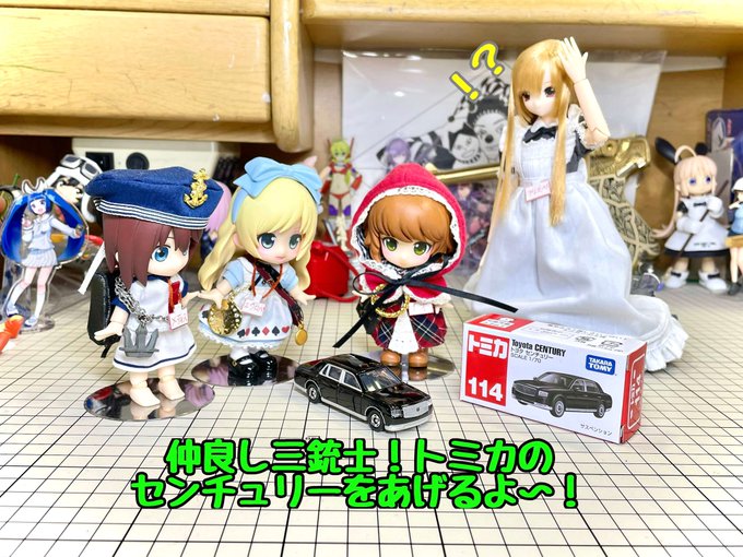 ウチのキューポッシュ達にトミカをプレゼント☆ だけど「キュポ娘にセンチュリーは渋すぎではないか」とプレセぺお姉さん、言われてみれば…!? でも三人は全然気にしてなかった、色々考えすぎも良くないかもね♪ #キューポッシュ #サアラズアラモード #アゾカツ