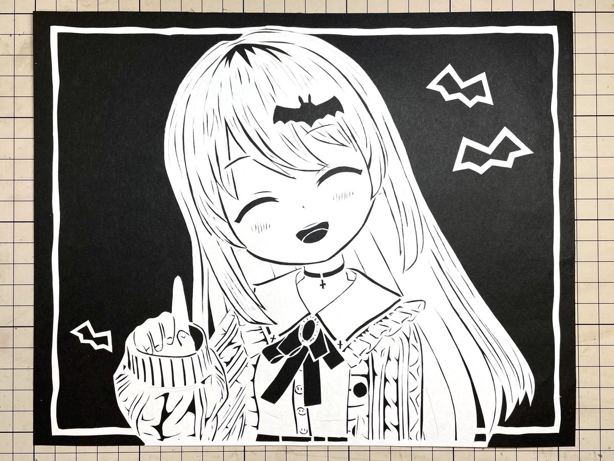 私の推しVTuber!エルゼ・フォン・エーデルシュタインちゃんの切り絵です☆ エルゼちゃんと巴お姉様のASMR…ガチで良い音と可愛らしさでMP全回復する事ができる私のお気に入り♪今回笑顔がステキなエルゼちゃんを切り絵にしてみました🦇 などと供述しており… #切り絵 #はらぺこヴァンパイア