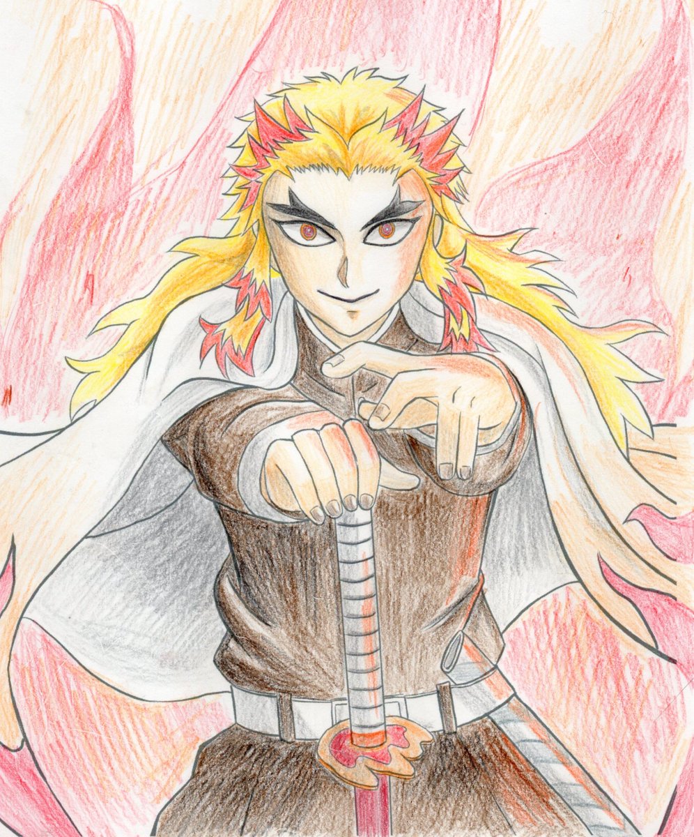 せっかくなので塗ってみた 久々の色鉛筆 #鬼滅の刃 #鬼滅の刃イラスト #煉獄杏寿郎