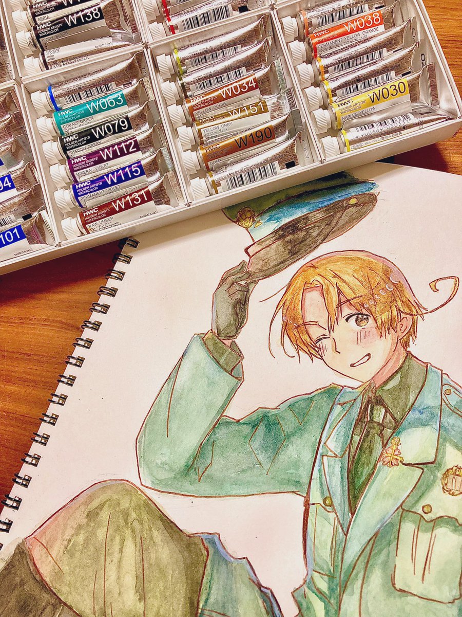 やっぱ模写が好き!!すっごいはみ出しちゃった。ごめんよイタちゃん! #ヘタリア #模写 #水彩画