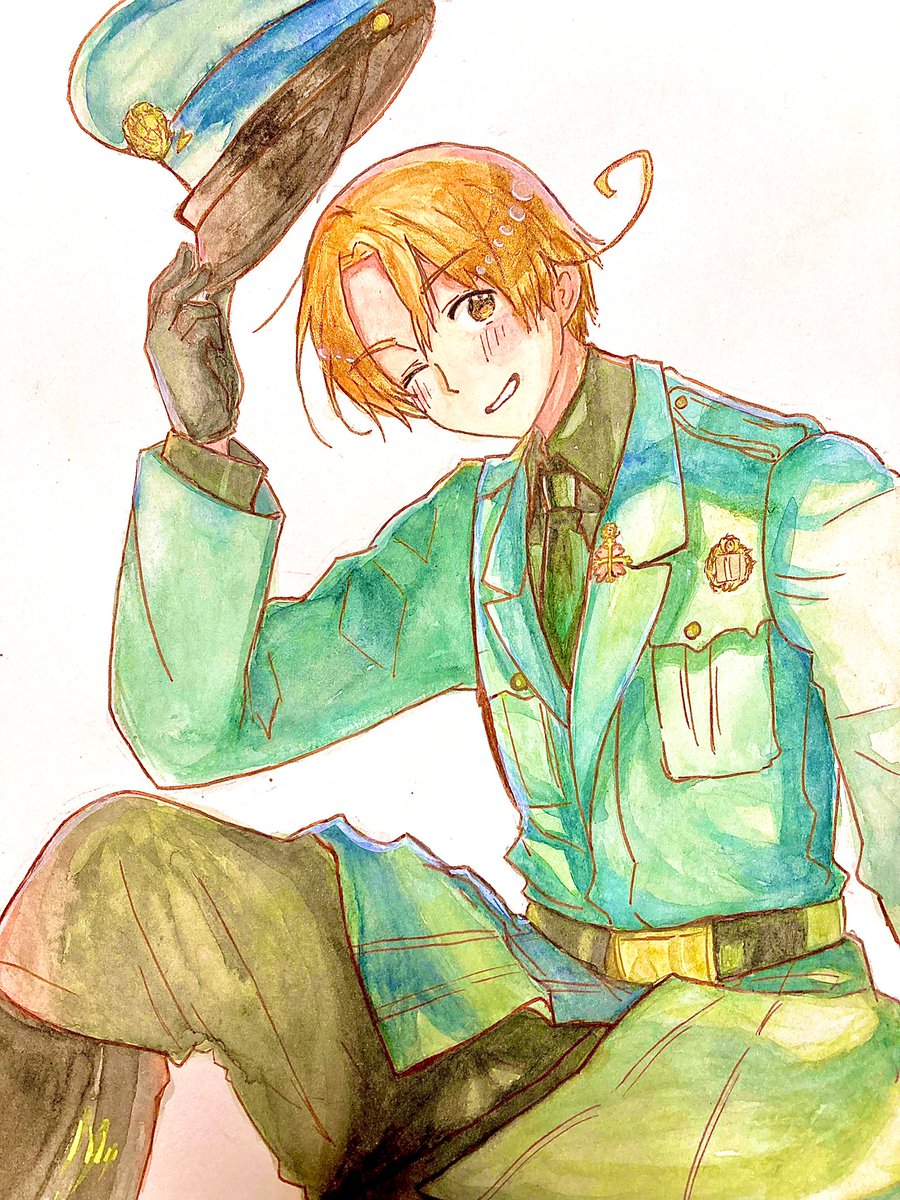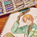 56 690 やっぱ模写が好き!!すっごいはみ出しちゃった。ごめんよイタちゃん! #ヘタリア #模写 #水彩画 22/04/30 18:46