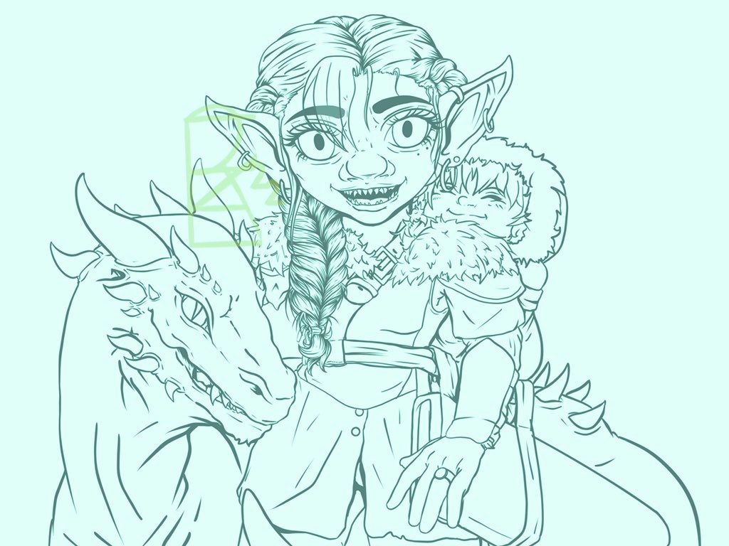 2hrs of sketching and line work 💖 my redrawing Ufeli the goblin mom and her children 💖 she’s a an Elf drake Warden who’s mother killed her and reincarnated Ufeli as a goblin for punishment. 💖 #Goblin #goblingirl #DnDcharacter #dndart #dndoc