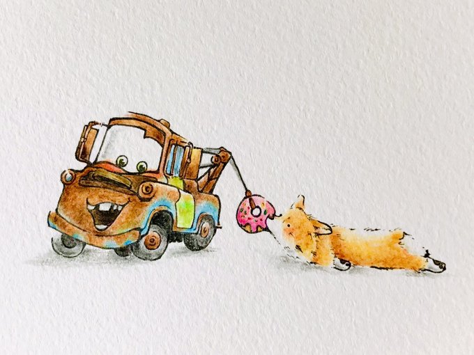1 15 レッカーされるコーギー 新たな遊び方を見つける #コーギー #コーギーのいる暮らし #イラスト #ディズニー 22/06/12 18:55