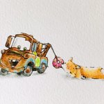 レッカーされるコーギー 新たな遊び方を見つける #コーギー #コーギーのいる暮らし #イラスト #ディズニー