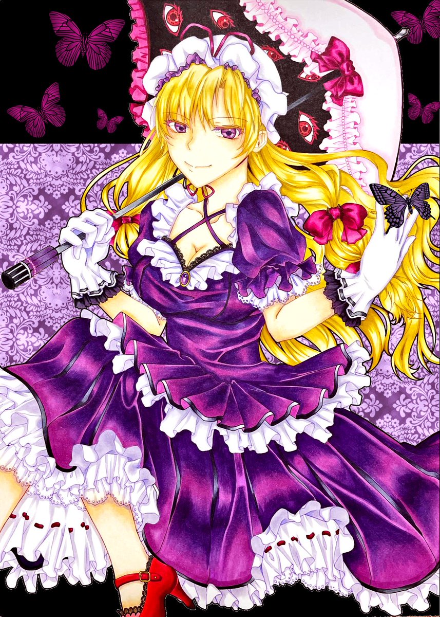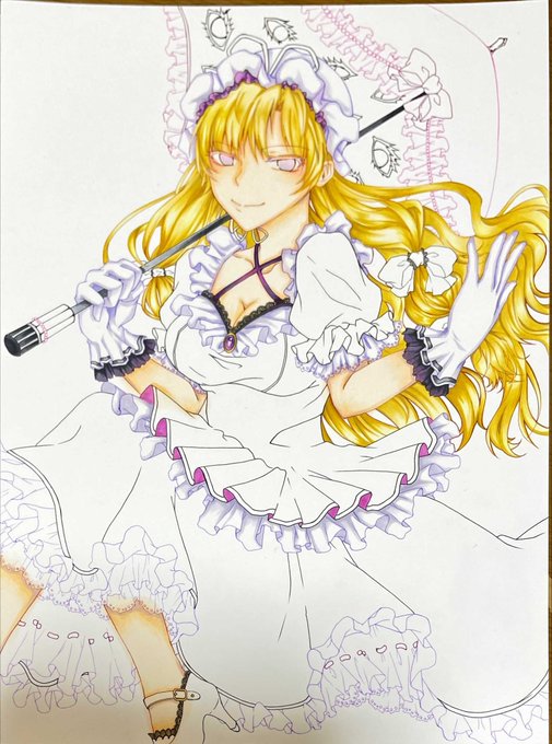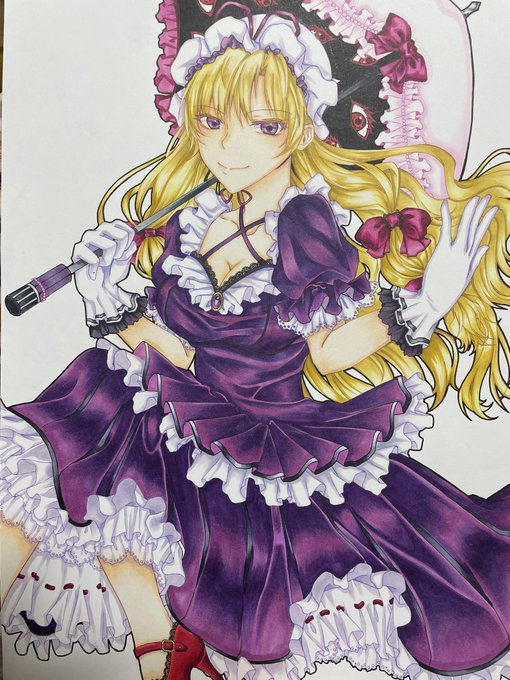 八雲紫 完成! 疲れた… ムラサキのコピック無くなりそう 赤い靴が一番お気に入り #アナログイラスト #コピック
