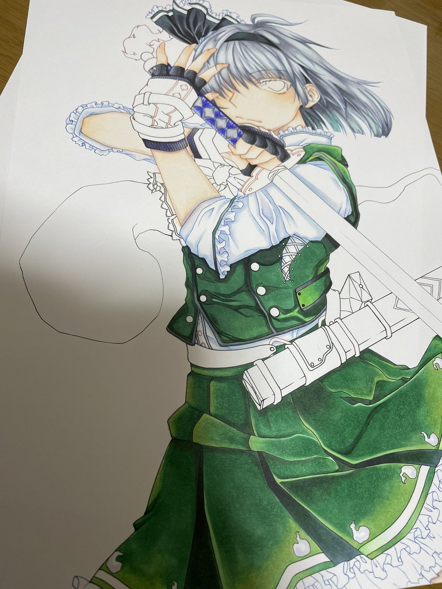 2 5 アイビス先生に背景なんとかしてもらった… とりあえず妖夢はこれで完了! 残り3枚… #アイビスペイント #コピック 22/01/29 19:50