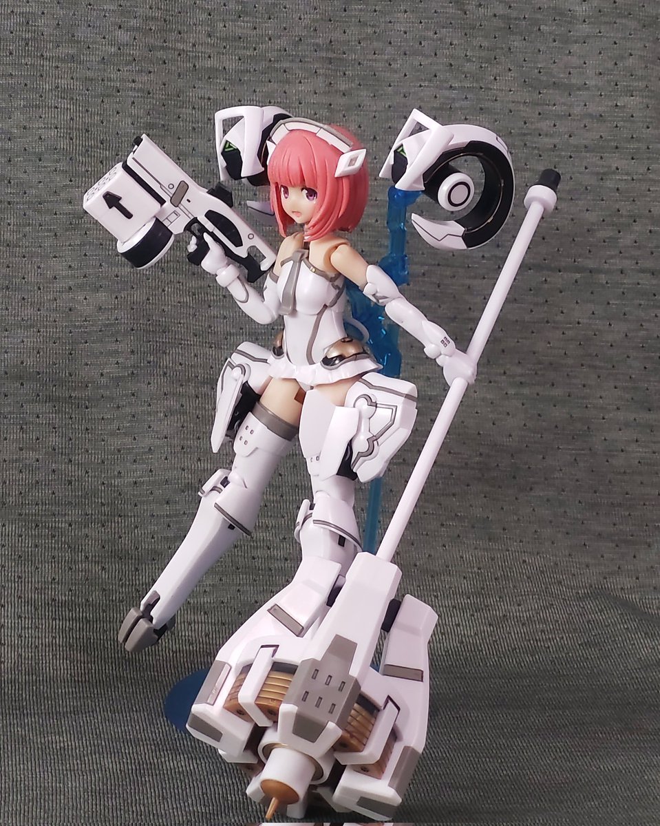 今更ながらノーマル愛花ちゃん組んだ ちょうかわいい(๑'ᴗ'๑) しかし部分塗装が苦行過ぎる…塗装済みパーツにも追加で色乗せないといけないし ボトムギアのラインくらいはせめてデカールを用意してほしかったっす… #メガミデバイス #アリスギア
