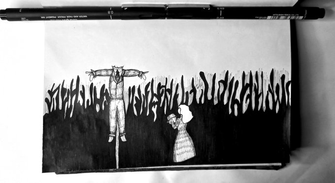 2 4 7. Espantapájaros #superlucidrawtober2021 #drawtober2021 #inktober2021 #inktober 21/10/12 01:14