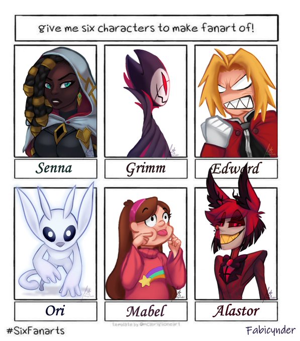 I made it! Kinda late, but I made it! I was also testing a new style, that I loved ★✩★✩ #senna #leagueoflegends #lol #grimm #grimmtroupe #HollowKnight #edward #edwardelric #fullmetalalchemist #ori #mabel #gravityfalls #alastor #hazbinhotel #fanart #sixfanarts #six_fanarts