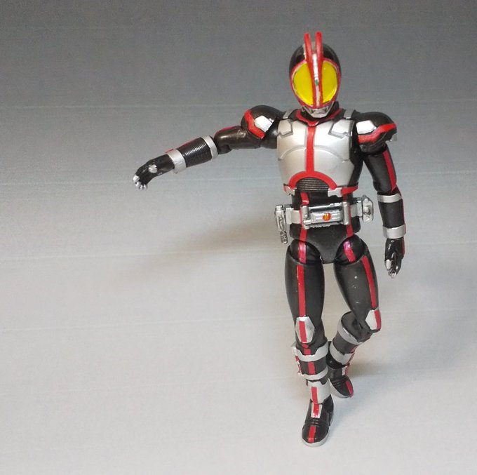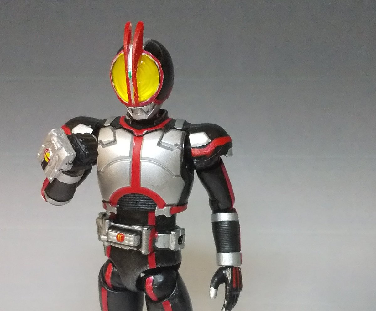 13 44 掌動X仮面ライダーファイズ改修完了しました。複眼クリア化、スネ延長、二の腕を太くして塗装しました。好みのスタイルになったなー 令和初の完成作品でした。 #SHODO #掌動 #仮面ライダー555 #造って遊ぼ 19/05/06 21:12
