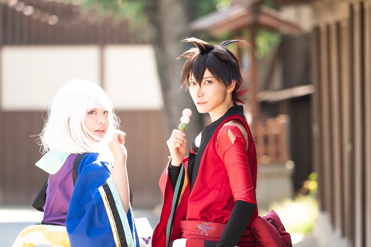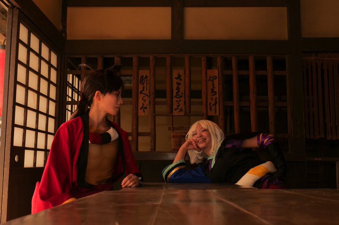 【コスプレ:刀語】 「今日も私の奇策は冴えてたな!!」 「あぁ、今日もとがめの策は冴えてたな。」 「そうだろう、そうだろう!もっと私を褒めていいんだぞ!!」 とがめ:私 七花:さづきさん(@10Sak25 ) photo:斑さん(@bbucchi4105 ) #コスメルin太秦映画村