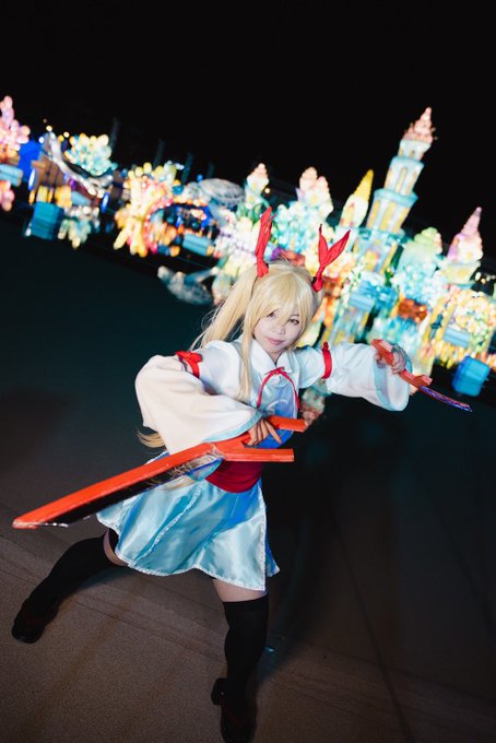#今年一番気合い入れて作ったコスプレ衣装見せて 念願の刀語のとがめと、 原神スイパラ璃月の蛍かな? 初めて和服作ったし、とがめのトップスは宅コスの時気に入らなかったので作り直してるしね… 蛍ちゃんも塗るの頑張ったし、帯が密かに龍の模様入ってんだよ(๑•̀ㅂ•́)و✧